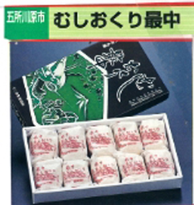・五所川原銘菓むしおくり最中小豆アンで最中に餅入りで、むしおくりの頭を型どった最中